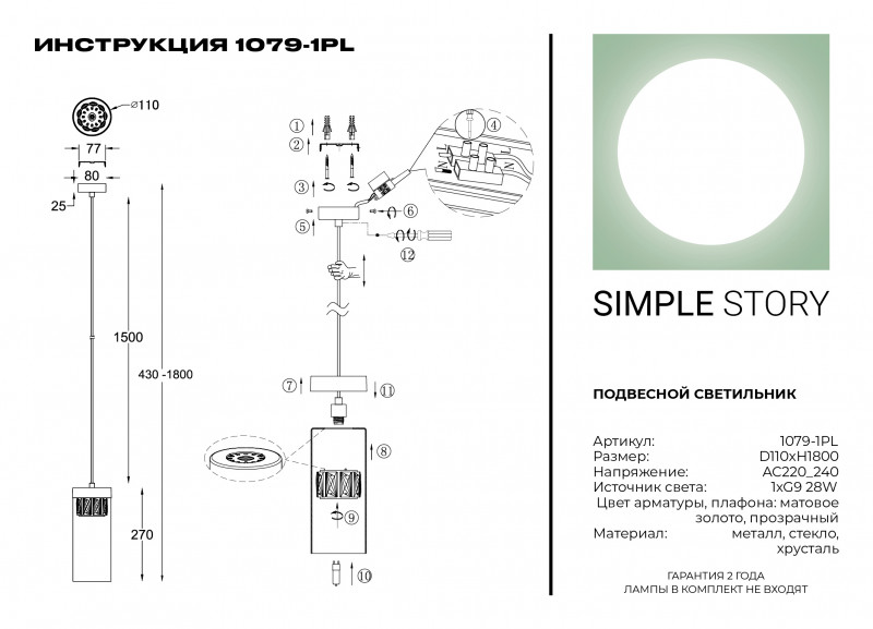 Подвесной светильник Simple Story 1079-1PL