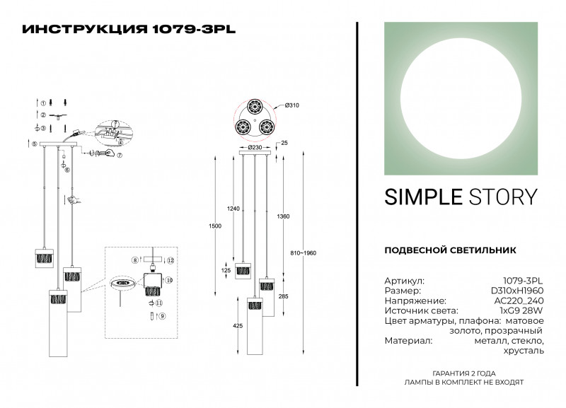 Подвесной светильник Simple Story 1079-3PL